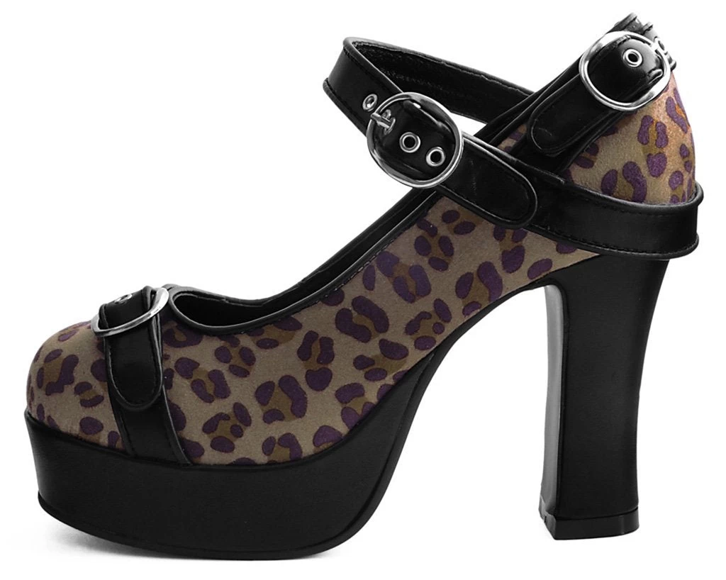 Look cute AF and tower above the rest in these chunky platform heels. Features a vegan friendly brown leopard microfiber upper contrasted by black buckle straps. Has a sturdy 4” heel height complemented by a 1 ¼” platform.