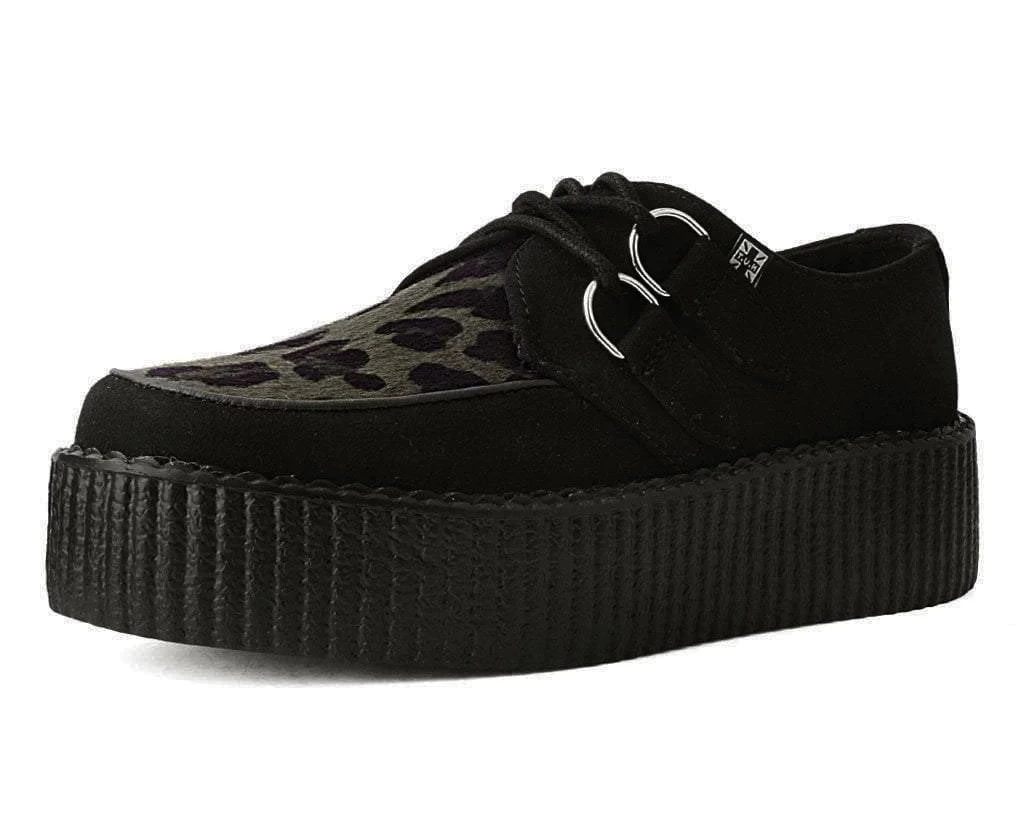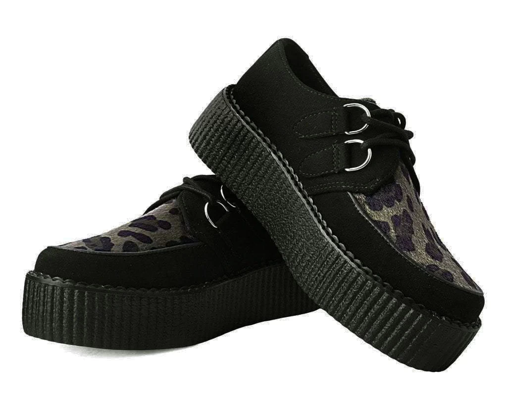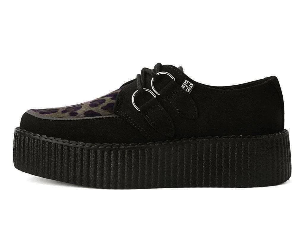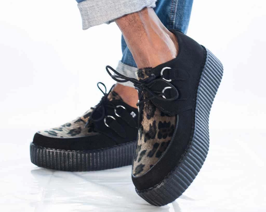 Kick things up a notch in these burgundy leopard and microfiber T.U.K. Viva Mondo Creepers. Our lightweight Viva mondo sole is approximately 1 3/4” at the heel and 1 1/4” in the front. Has removable memory foam insoles for added comfort. These round toe creepers have a olive leopard vamp, and silver metal D-rings on our patented T.U.K. Skull n’ Bones creeper sole design.