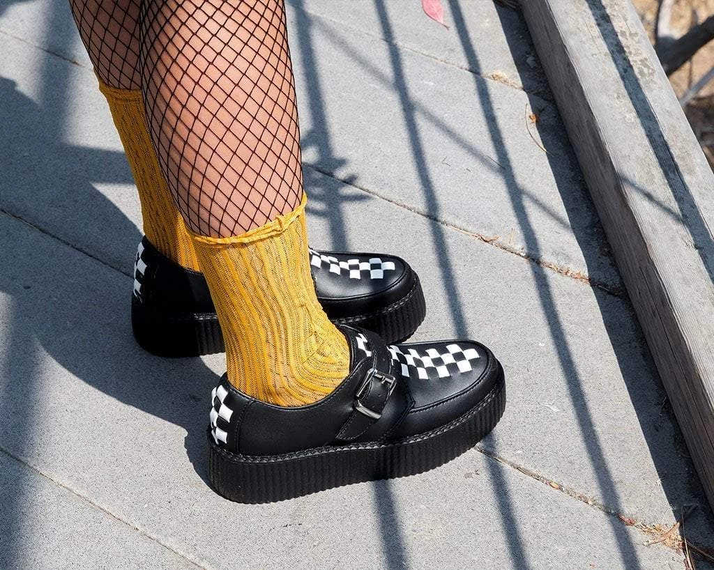 Take your style to a new level and get ready to live life in the fast lane. Features a metal buckle closure with a woven checkered strip on the vamp that sits on top of our lightweight VIVA mondo sole that has a platform height approximately 1 ¾” at the heel and 1 ¼” in the front. Has removable memory foam padding for added comfort.