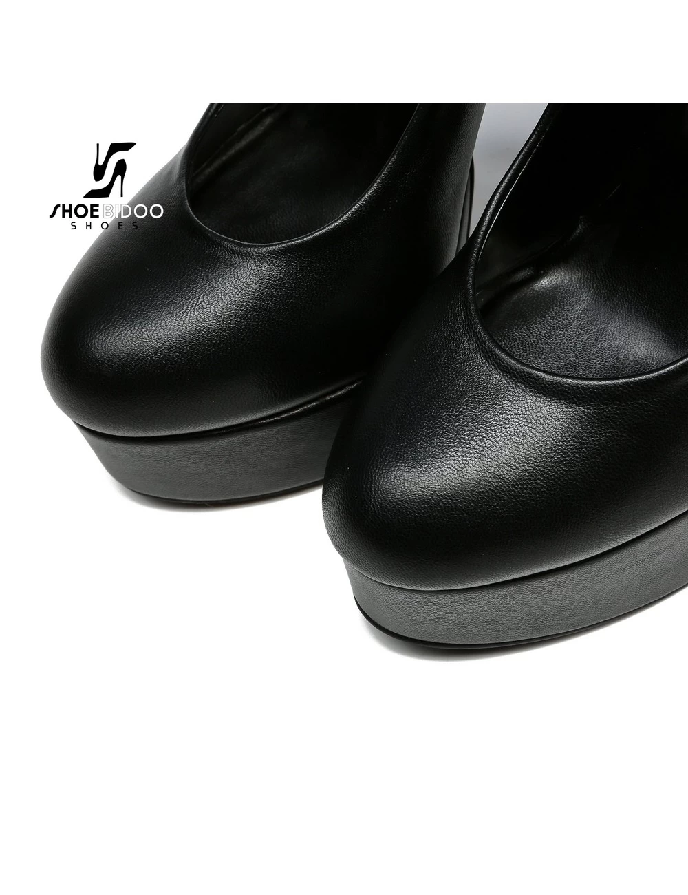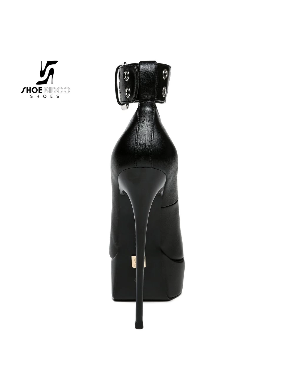 These cute black shiny platform pumps have a broad BDSM style ankle belt. Ideal to complete a fetish outfit. You won’t loose they heels accidentally with this heavy ankle belt.