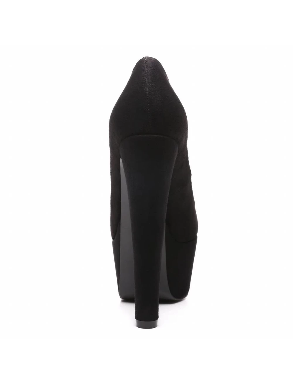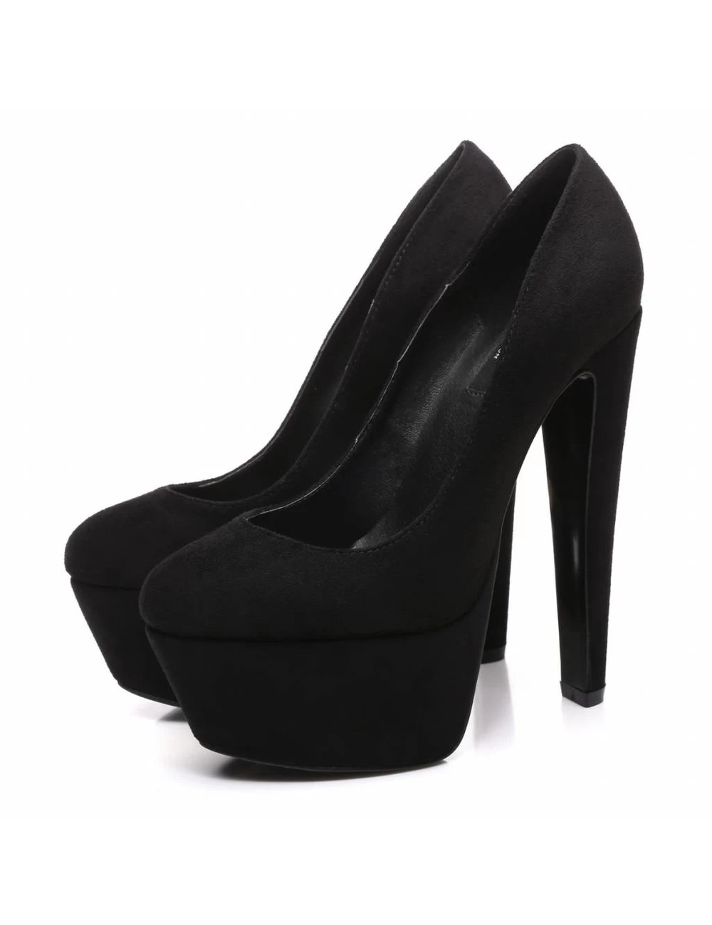 Nice cool black suede look ankle boots with high thick heels. Genuine fetish boots to complete an outfit. A nice close connection around your ankles. Excellent combination with jeans or black leggings. Check the dimensions carefully in the table below.
