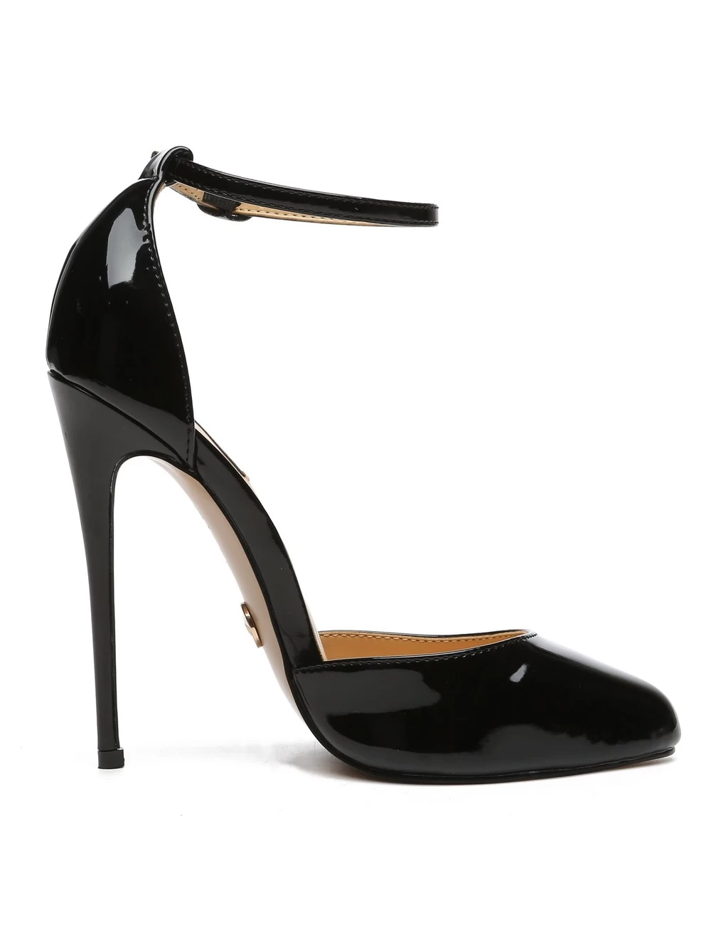 Beautiful fetish/fashion high heel sandal BELLA. Features a single ankle strap design and a closed toe design. Adjustable buckle strap at ankle. This must-have fetish sandal can be paired with everything from skinny jeans to dresses. A 12 cm stiletto heel.