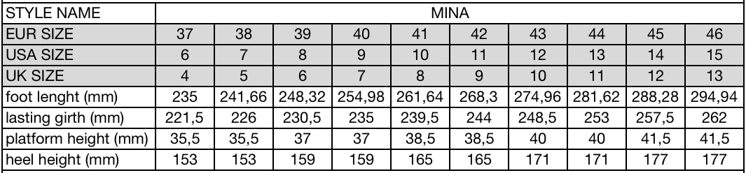 - 15cm heel height