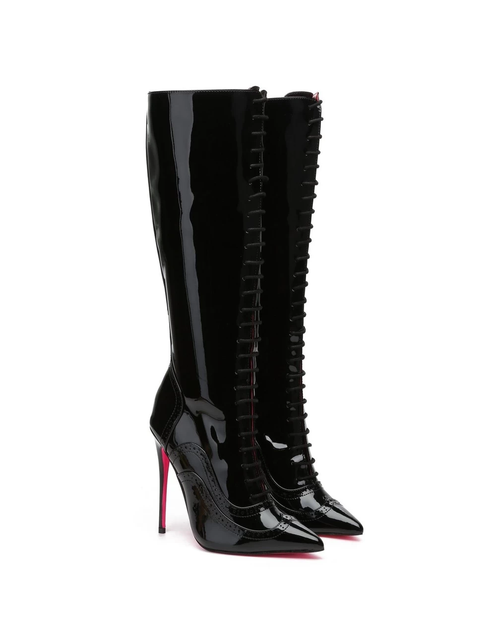 Make room in your boot collection for MILANA, our sexiest of the season. This fetish knee-high stiletto heel style is hot with front lace up and inside zipper. – 12cm sexy ultra fetish high heel – man made smooth premium PU material
