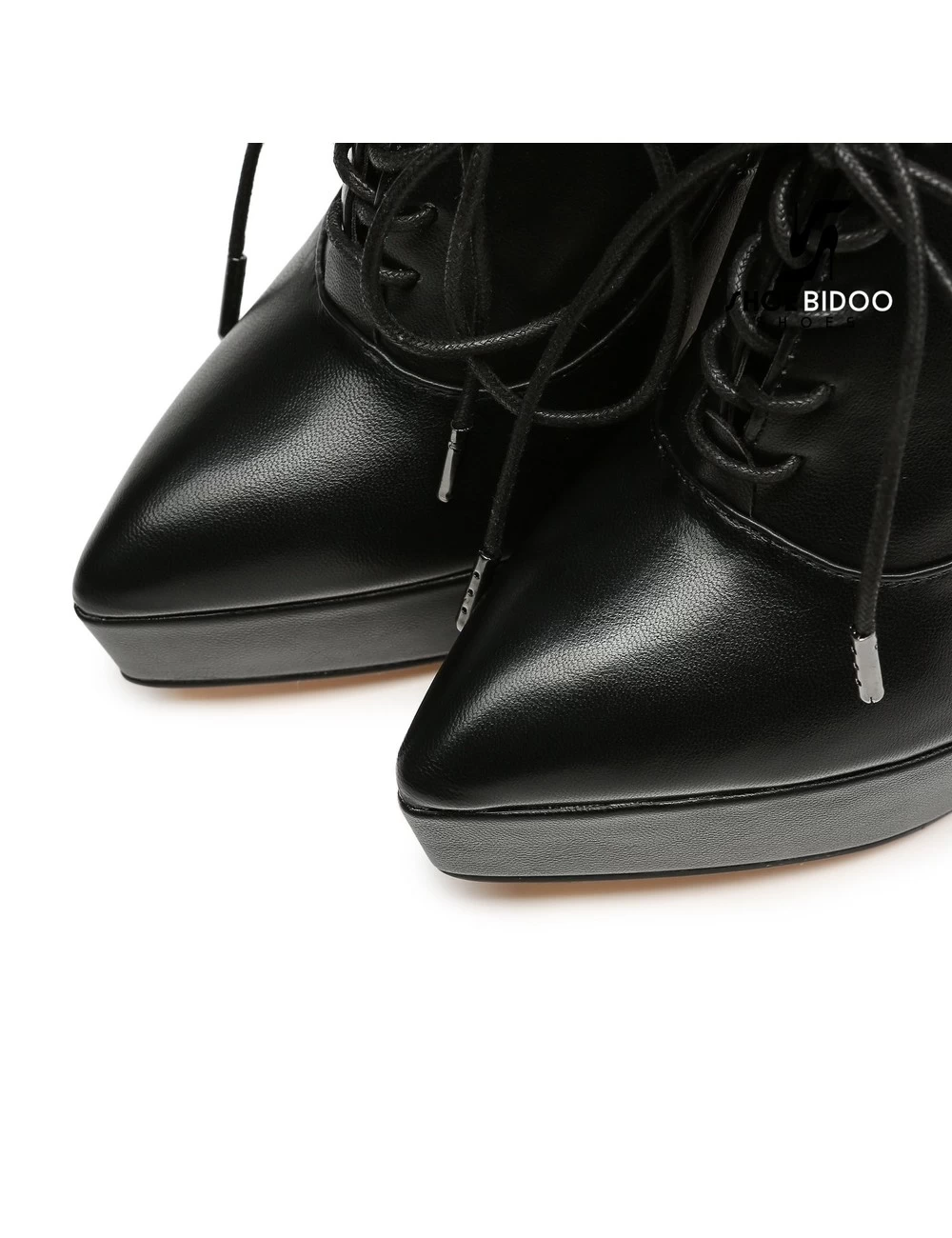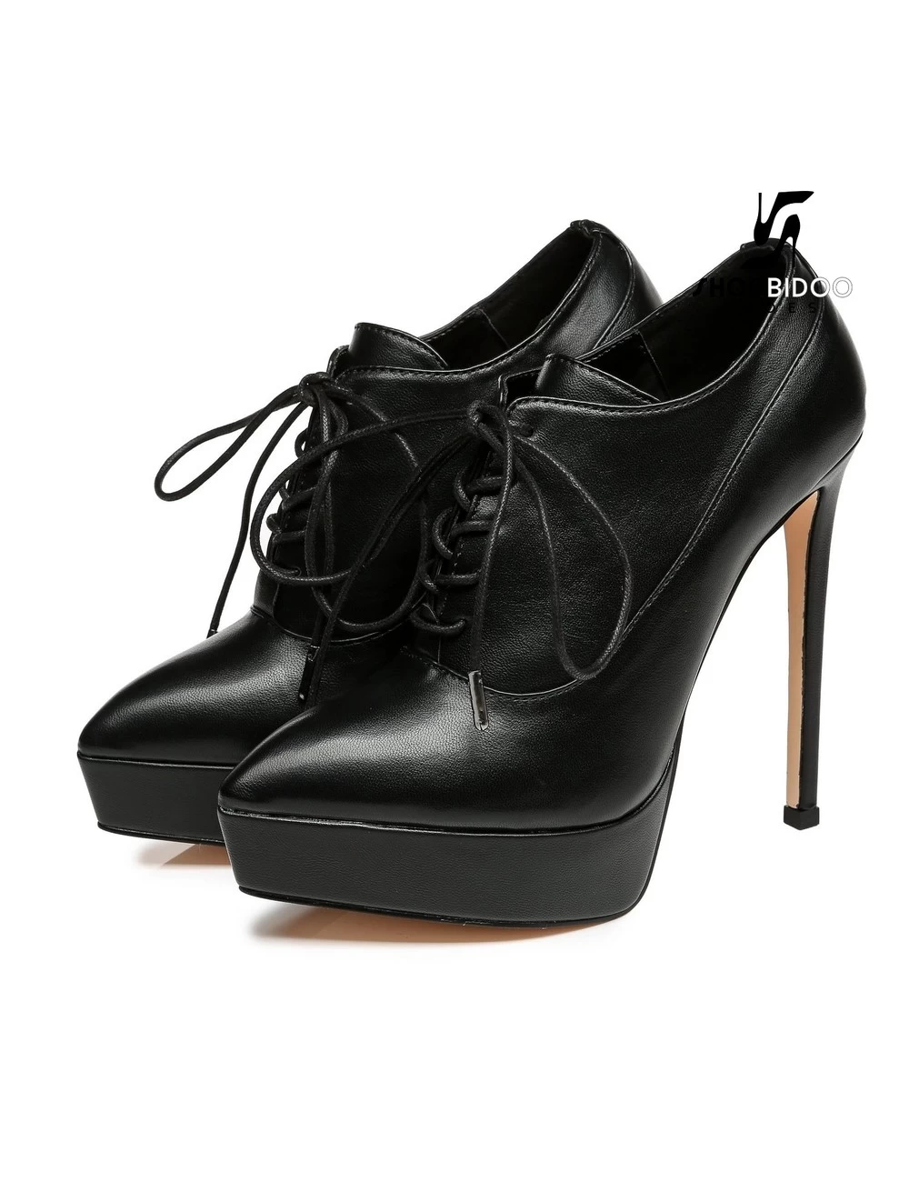 The classics. Lace up oxford pumps in a super cool black vegan leather and light sole. Combines with almost anything. Easy to wear with an effective walking height of 11cm high heels on size 38. Beautiful pointed noses give you the designer look at an affordable price.