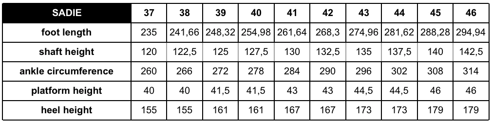 Give ‘em something to talk about in SADIE. This fierce corset-inspired platform bootie is both sexy and cool, perfect for tucking into cargo pants or jeans. 15cm heel height, 4cm platform