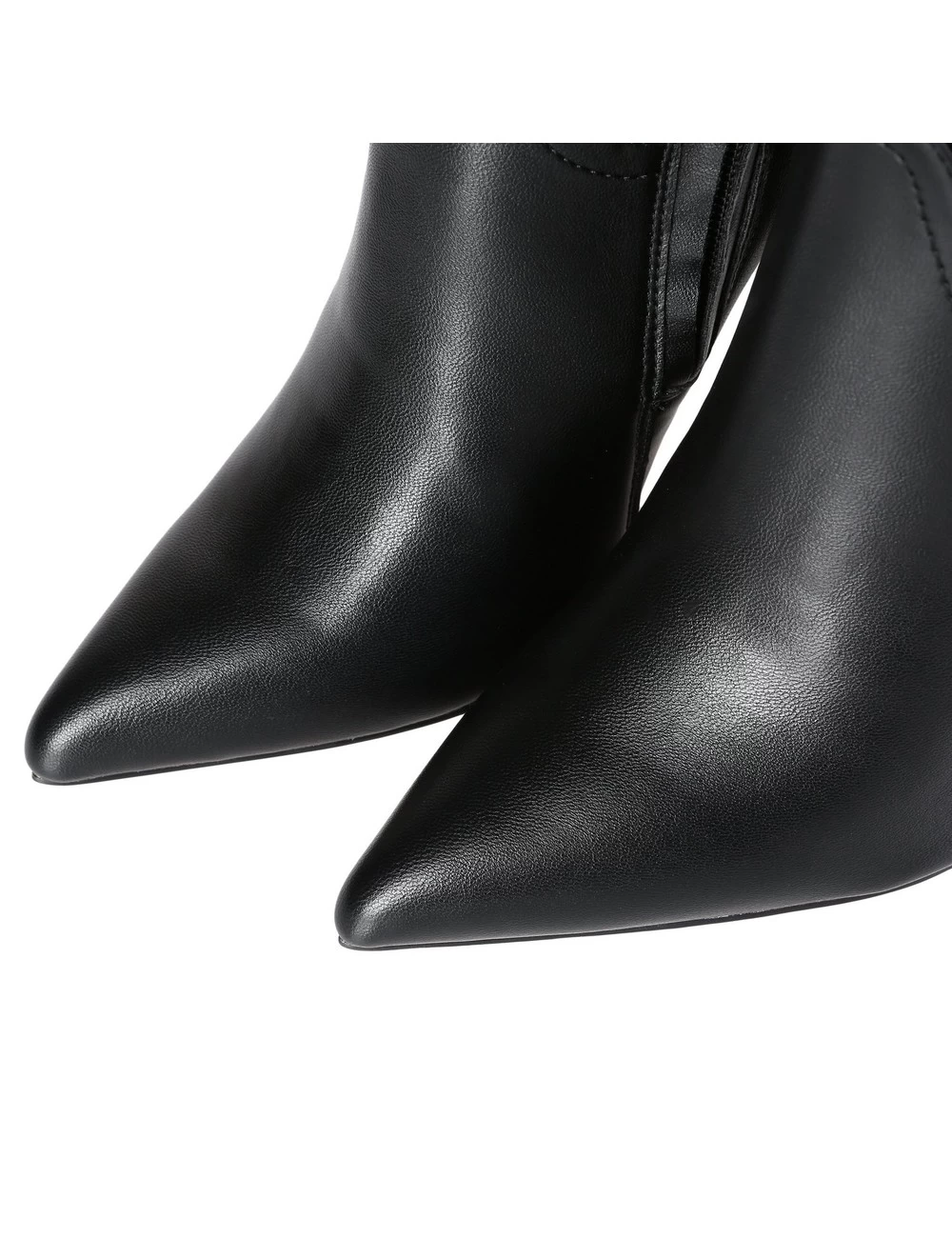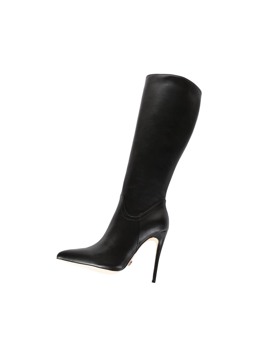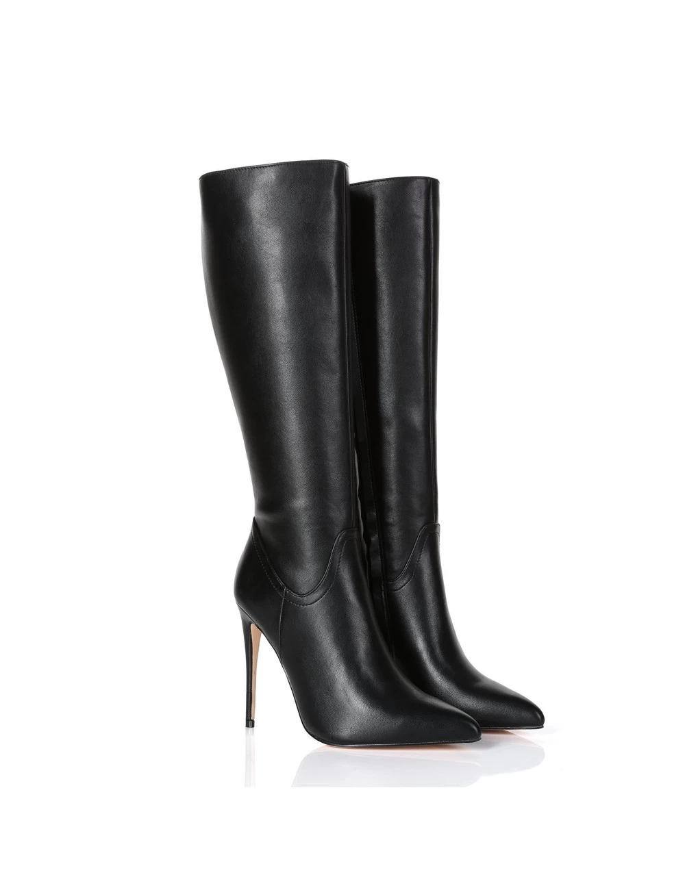 Knee high elegant Italian style boots with 11cm heels, no platform, red lining and full length zipper in BLACK MATTE Vegan PU Leather. The BLACK style is new and has a bit lower heels than the previous ZIRA style. Fit and sizing is the same.