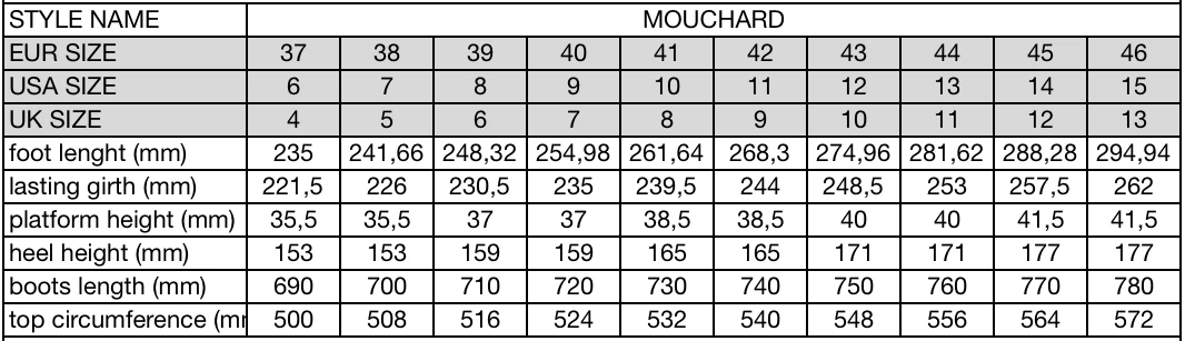 Heel height varies per size from 15,5 to 17cm.