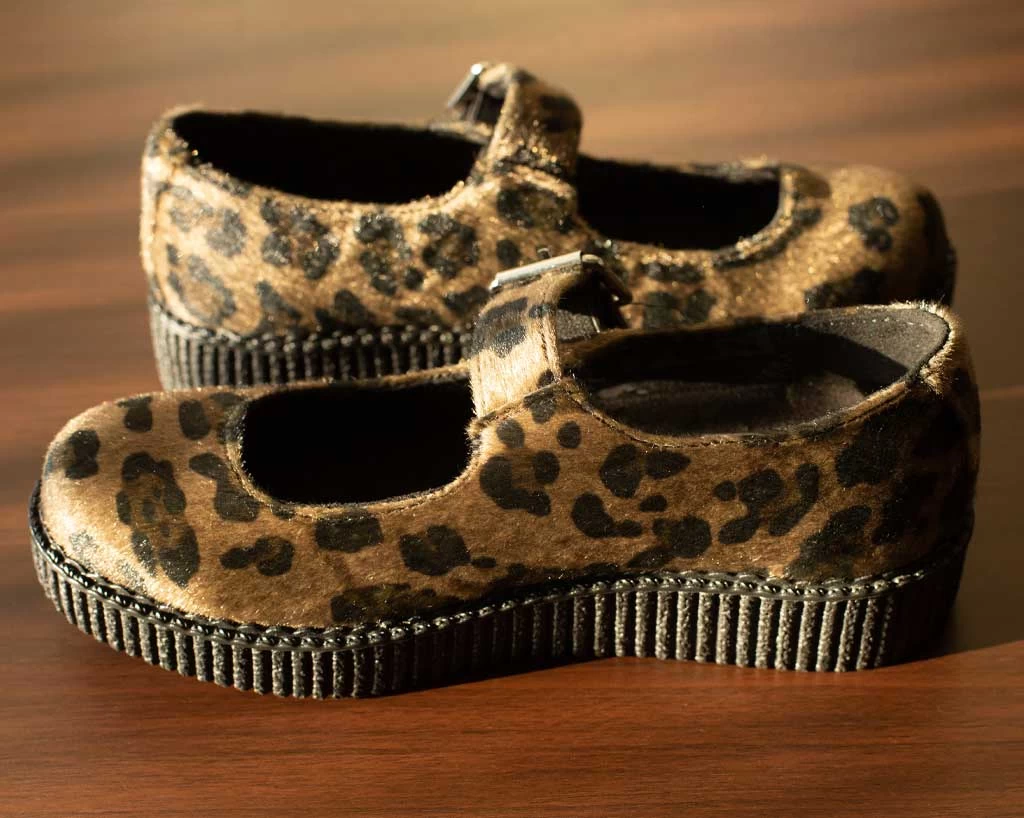 Spotted! The cutest pair of shoes on the block. Features a vegan friendly leopard faux fur upper and a low platform height that is approximately 1 ¼” at the heel and ¾” in the front and is made of a mixture of EVA and rubber that contributes to the sole’s bendability. Has a olive leopard upper and comes with removable memory foam insoles for added comfort.
