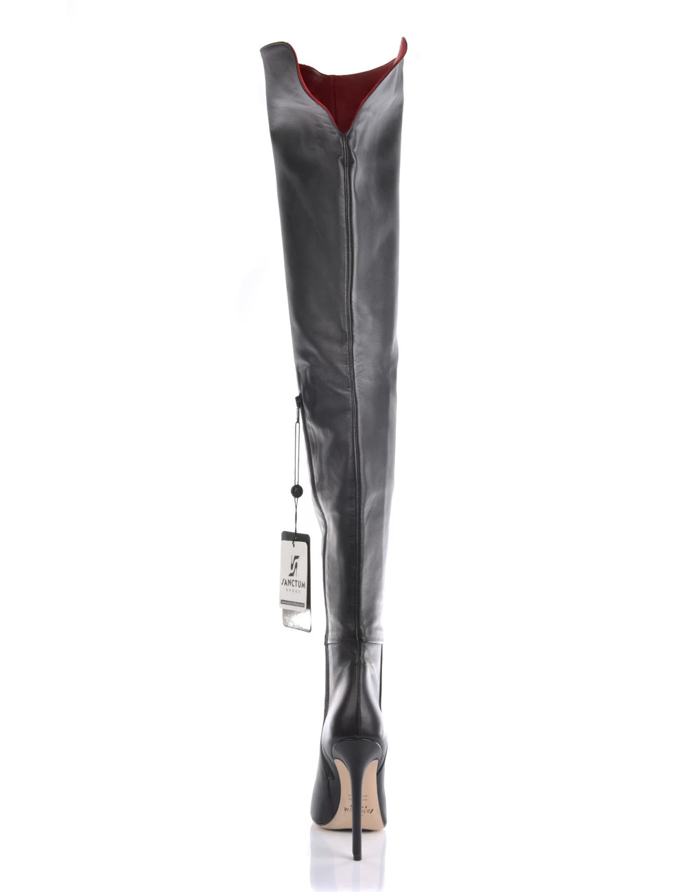 The ultimate fashion meets fetish boots. Super high heels and at the same time the comfort and quality of real leather designer shoes from Italy. The boots have a striking rubber anti-slip inlay in the sole to facilitate walking while not slipping on the leather sole.