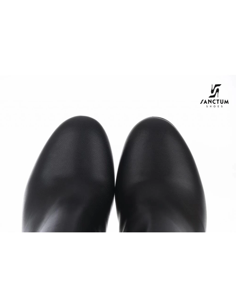 The heels are 10 centimeters high, there is no platform. Zippers on the inside of the boot. Round noses.