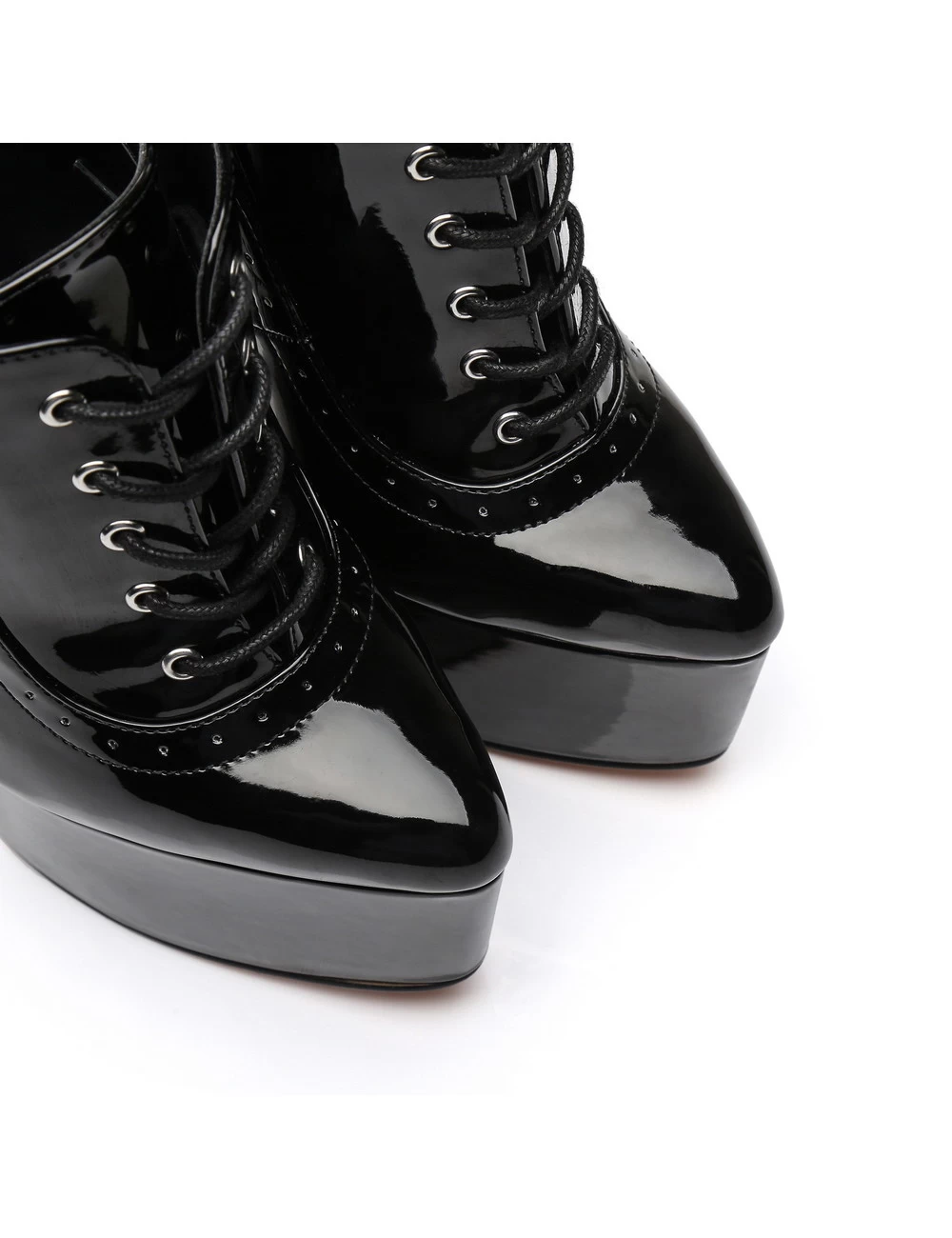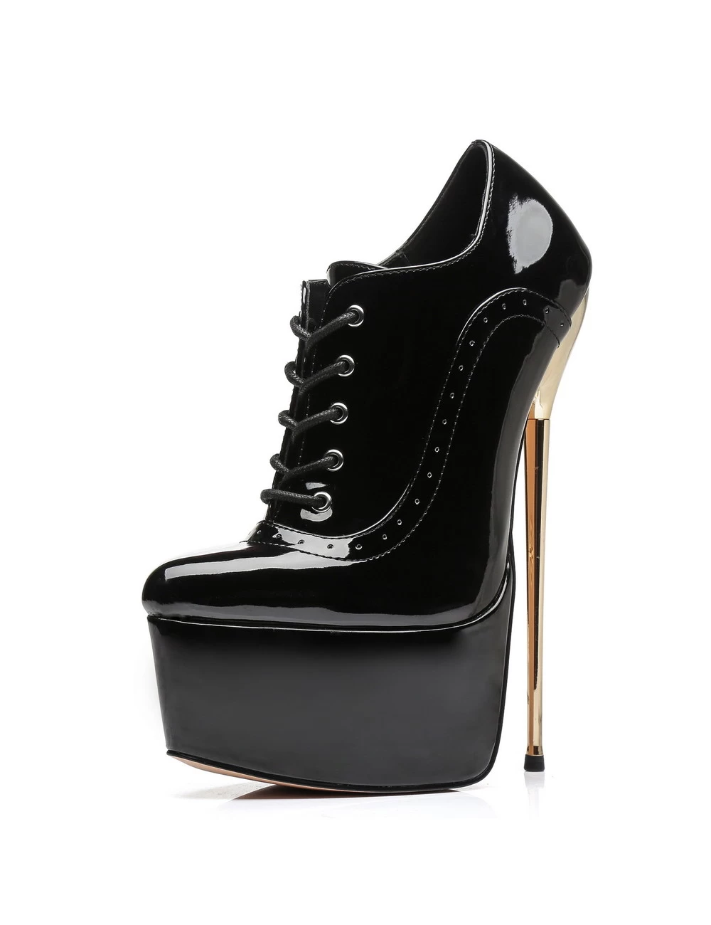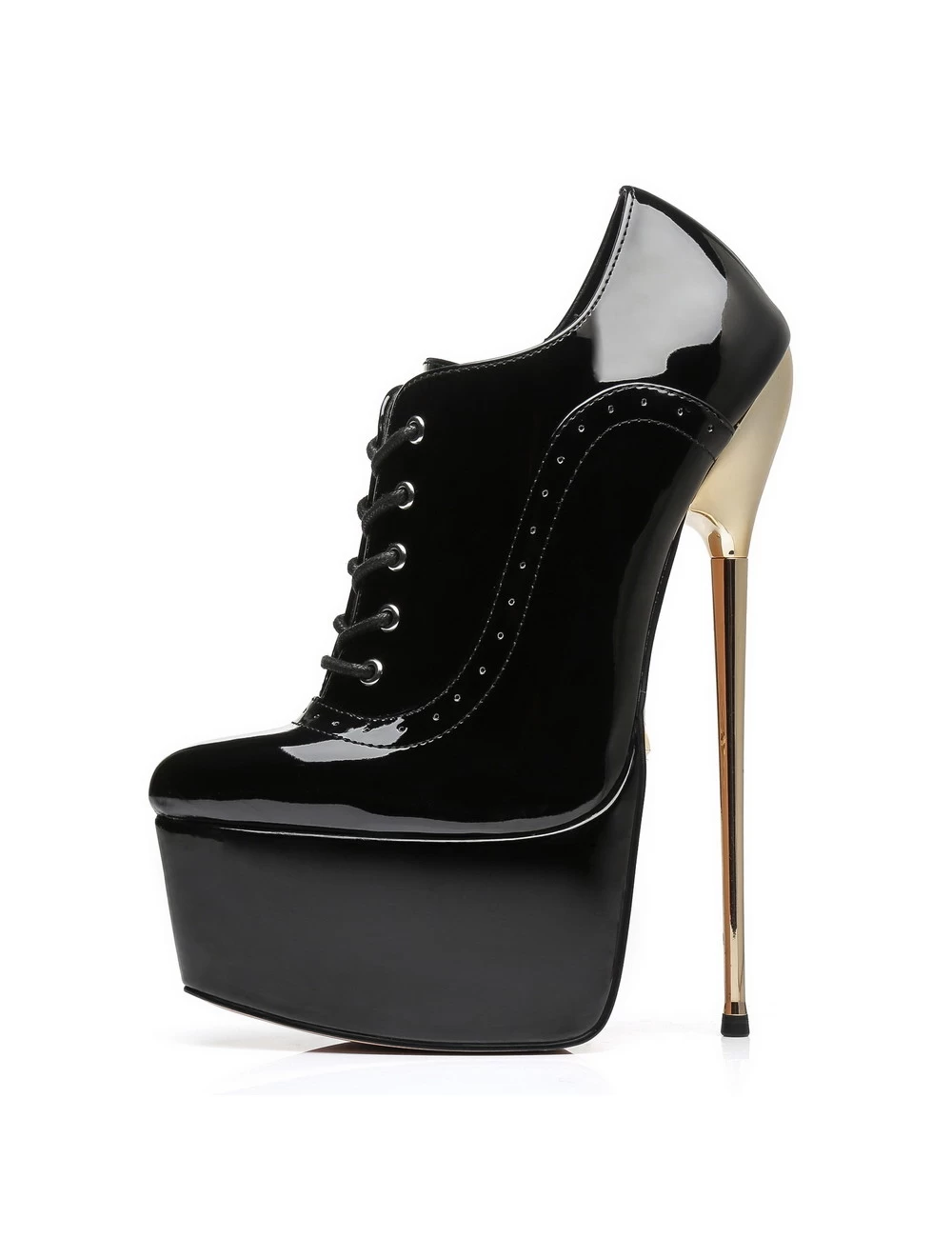 Beautiful new Giaro oxford pumps with laces up front. When lacing these pumps tightly it will be a bit easier to walk in these 20 cm metal heeled platforms. 6cm platform, 14cm effective heels.
